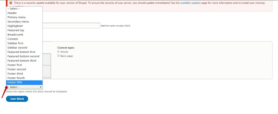 В раскрывающемся меню Select выбрать Footer Fifth