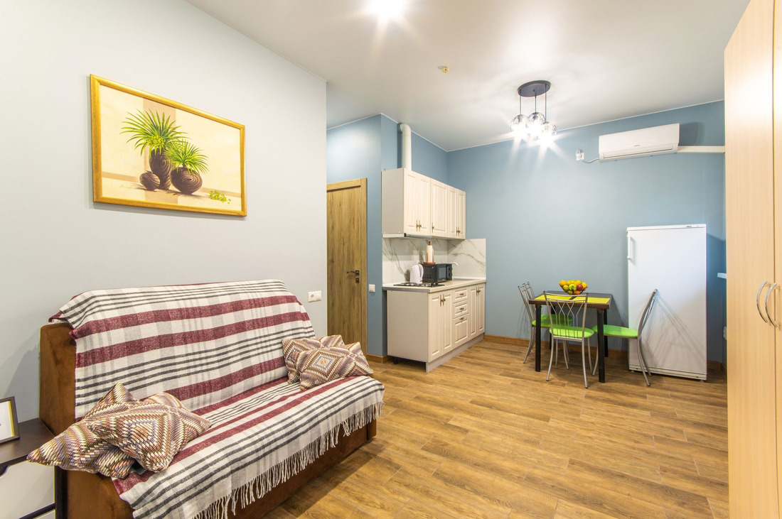 Апартаменты находятся в курортном районе Дагомыса (Сочи), рядом со знаменитыми 4-х и 5-ти звездочными отелями. Выполнен современный ремонт, новая мебель.В апартаментах есть абсолютно все для комфортного проживания и питания, а также средства по уходу за одеждой и помещением.